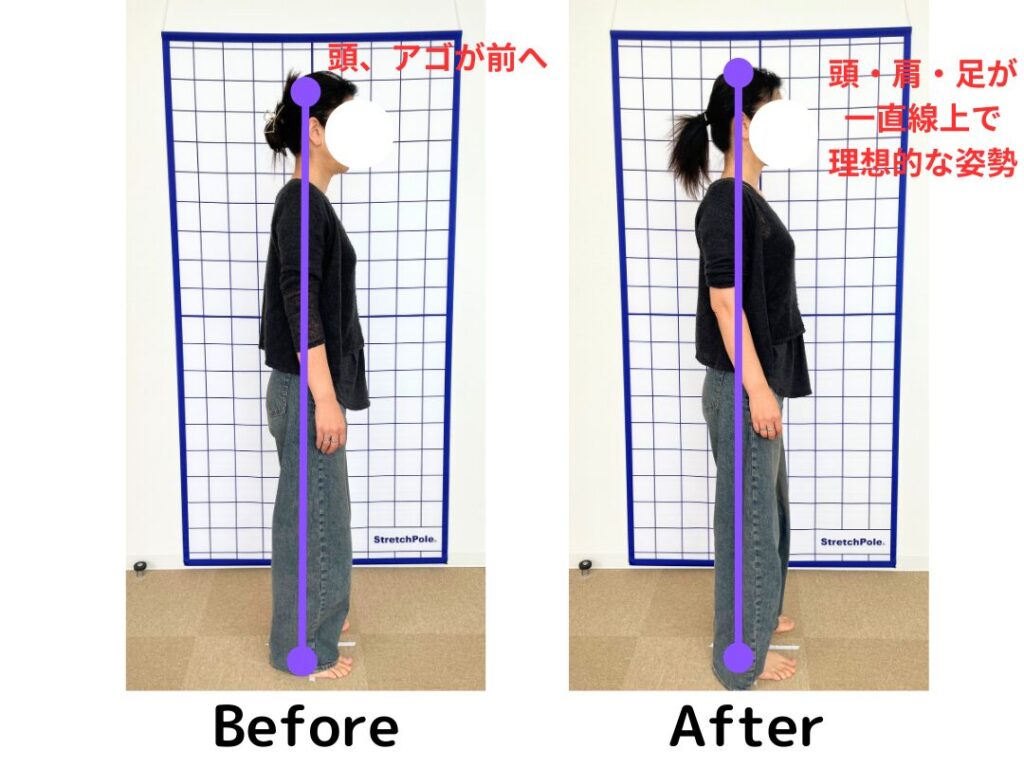 ✅ 猫背で肩こりや腰の不調もあってつらい。