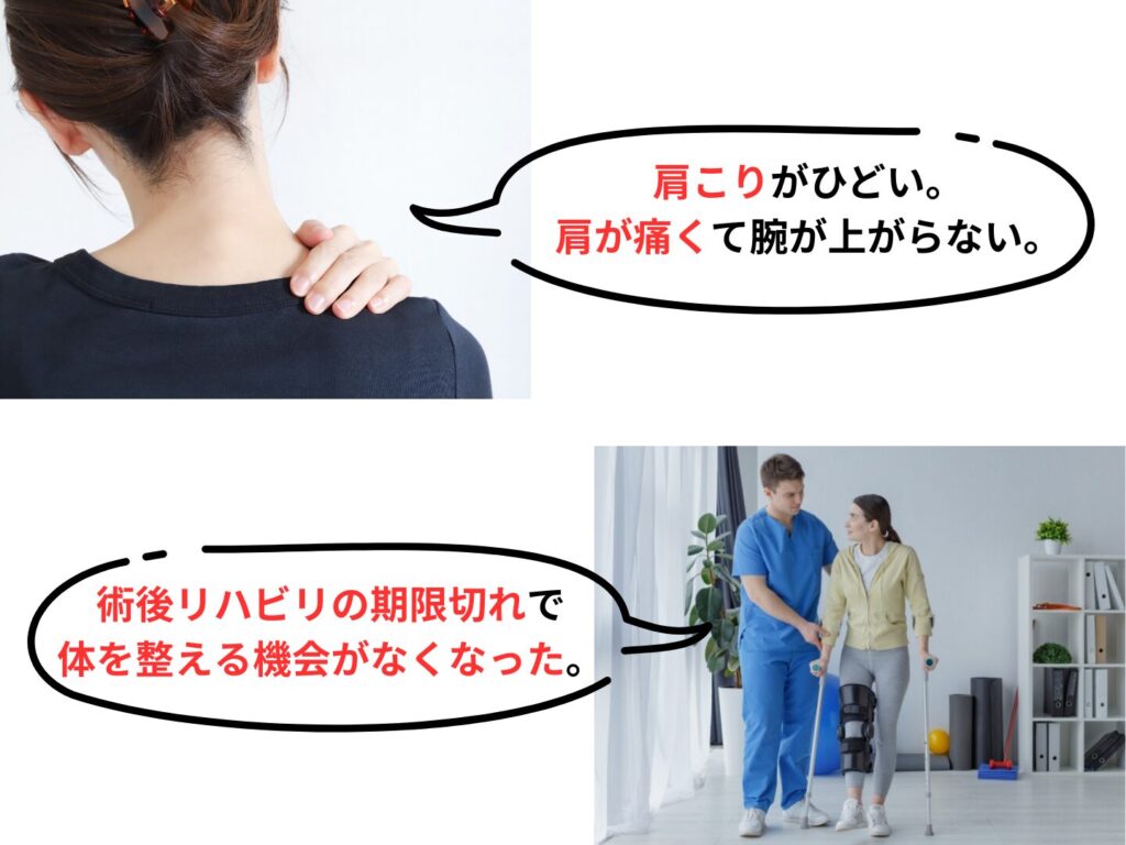 【対象】肩、腰、足の痛み・不調を抱えている方
